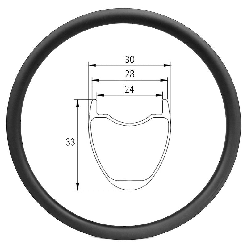 D24-33H - 700c gravel bike 24mm internal width 33mm deep hookless carbon rim - 350g