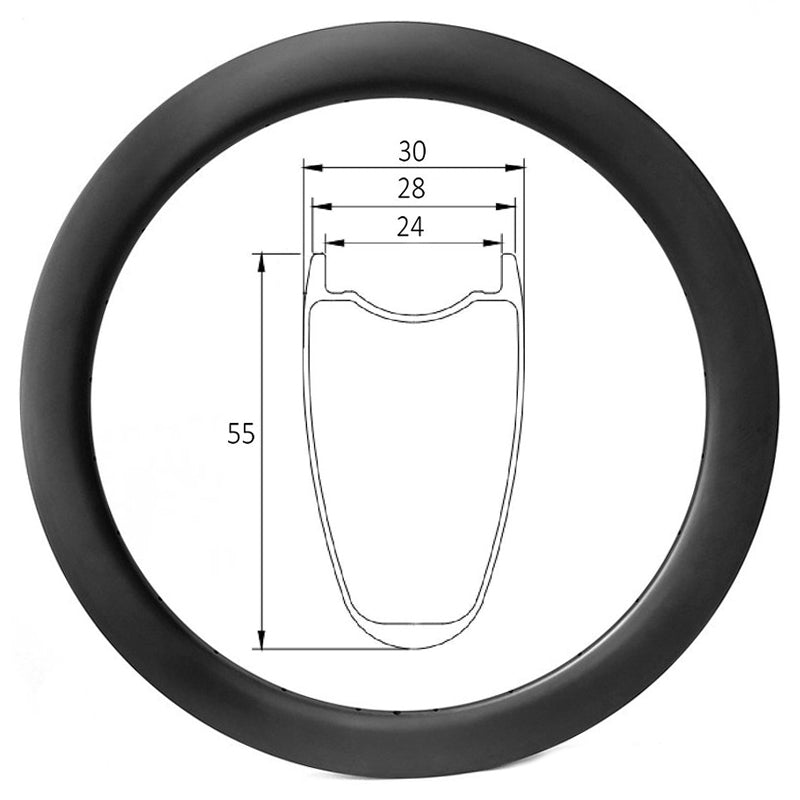 D24-55H - 700c gravel bike 24mm internal width 55mm deep hookless carbon rim - 420g